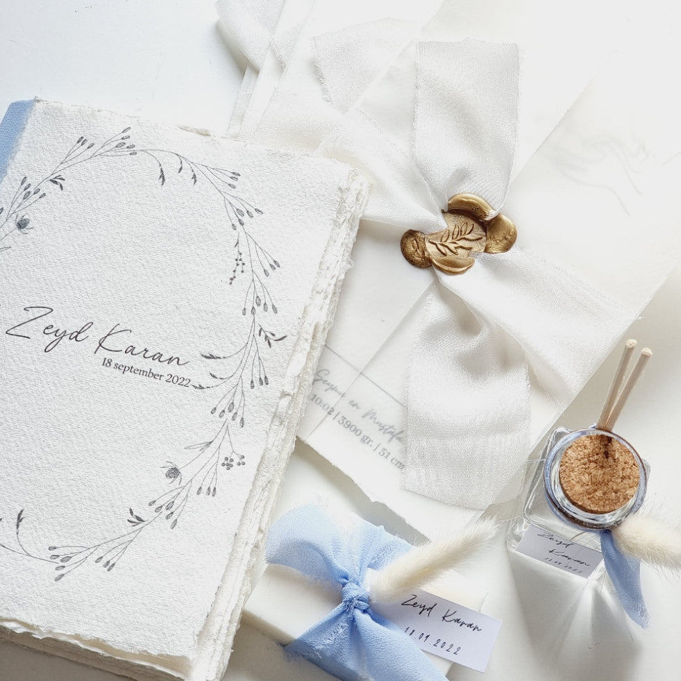 Zet een kraamset bij elkaar door 2 verschillende bedankjes te kiezen, geboortekaartjes en een babyboek.