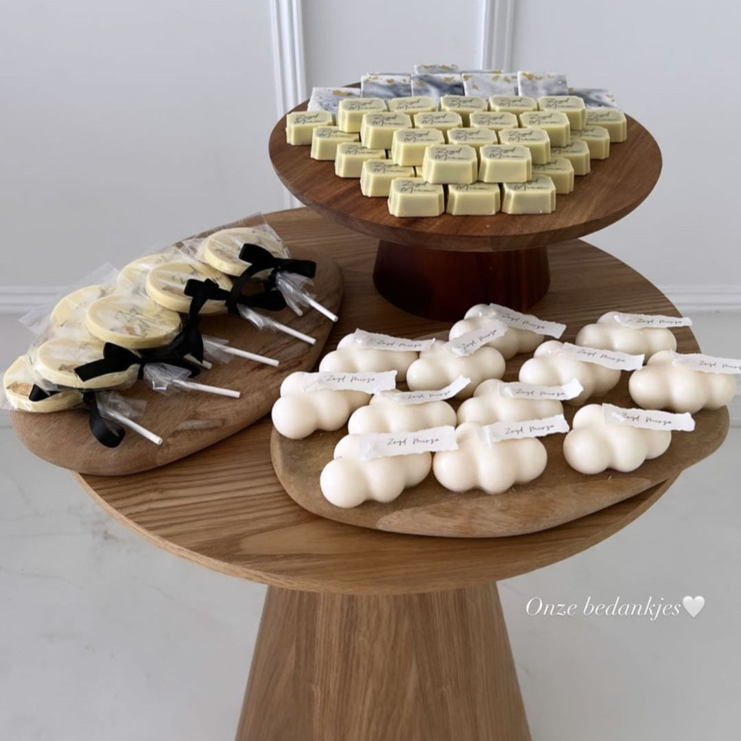 Combineer verschillende soorten bedankjes met elkaar. Kaarsjes met zeepjes etc.