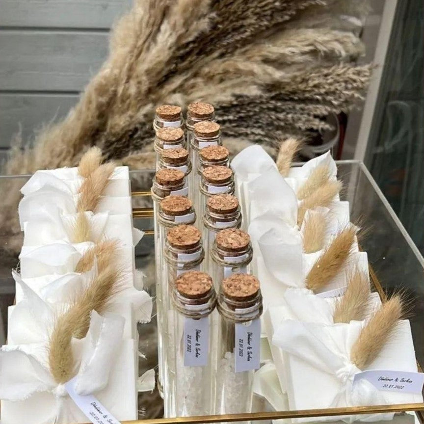 Als jij een decoratie thema hebt voor jouw speciale dag, combineer deze dan met de bedankjes. Dit kan door: Kleur van lint, droogbloemen, materiaal etc.