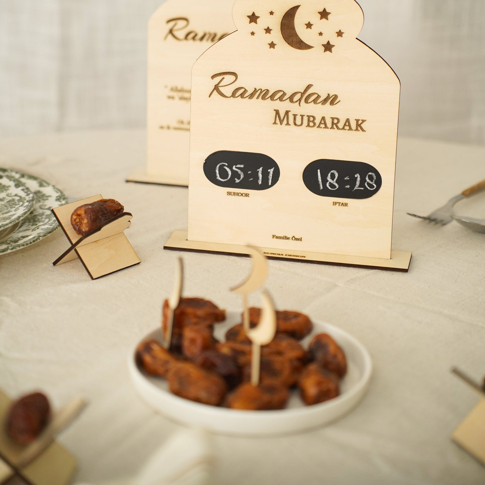 Onze Ramadan-decoraties zijn met liefde ontworpen om jaar na jaar jouw huis te versieren. Personaliseer ze naar wens en creëer een warme, sfeervolle Ramadan. Duurzaam, stijlvol en uniek – speciaal voor jou gemaakt.